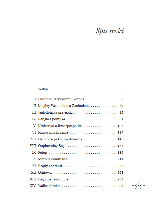 Znajdziemy tu politykę, wojny, kulturę, problemy religijne i historię zmieniającego się społeczeństwa. Adam Zamoyski opowiada historię Polaków z dwojakiej perspektywy: Polaka, rodzinną tradycją przywiązanego do polskiej kultury, i Anglika, który obserwuje nas z zewnątrz. I dostrzega to, co w rodzimej historii najbardziej światłe, wyjątkowe, tragiczne, ale i to, co mało chwalebne.