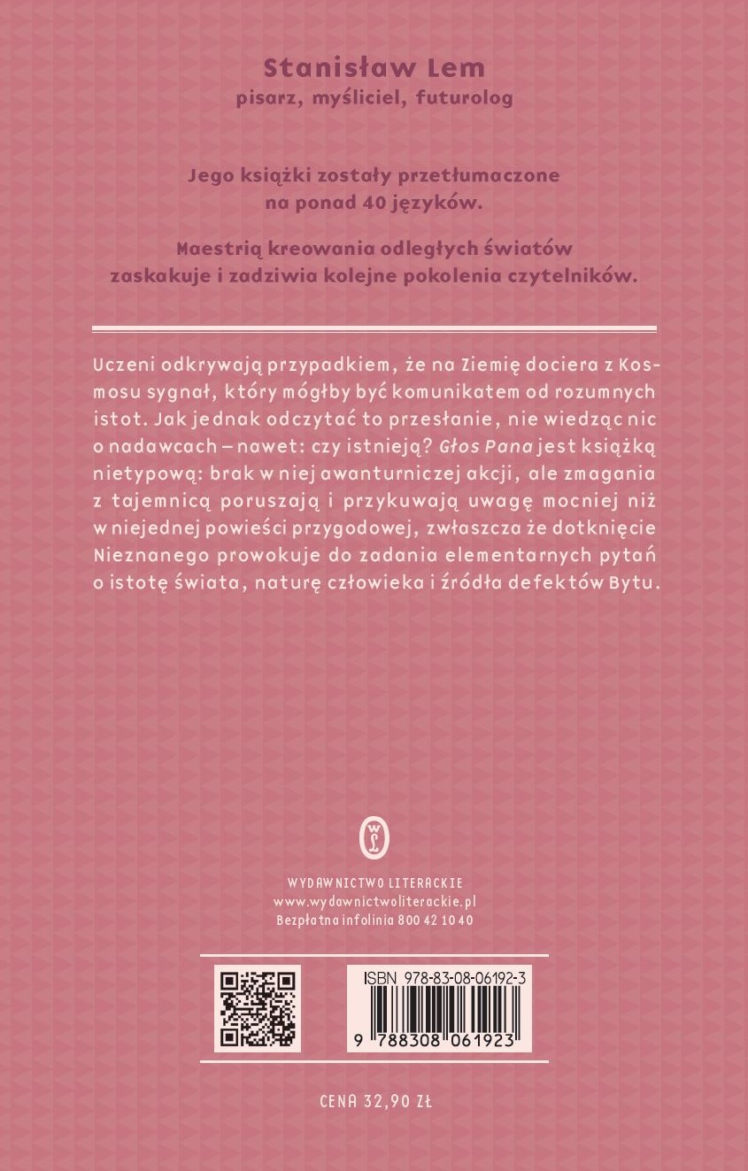 Głos Pana, który powstał tuż po powieści Solaris, to popis kunsztu pisarskiego Lema:  brak w tej książce awanturniczej akcji, ale zmagania uczonych z tajemnicą poruszają i przykuwają uwagę bardziej niż w niejednej powieści przygodowej, a dotknięcie Nieznanego prowokuje do zadania najważniejszych pytań o istotę świata i naturę człowieka.