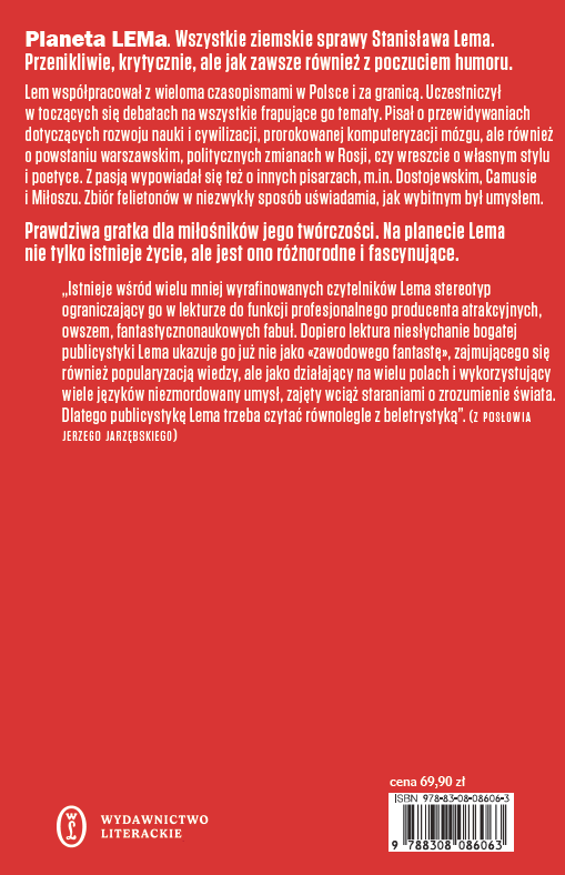 Planeta LEMa. Wszystkie ziemskie sprawy genialnego pisarza. Przenikliwie, krytycznie, ale jak zawsze z poczuciem humoru.