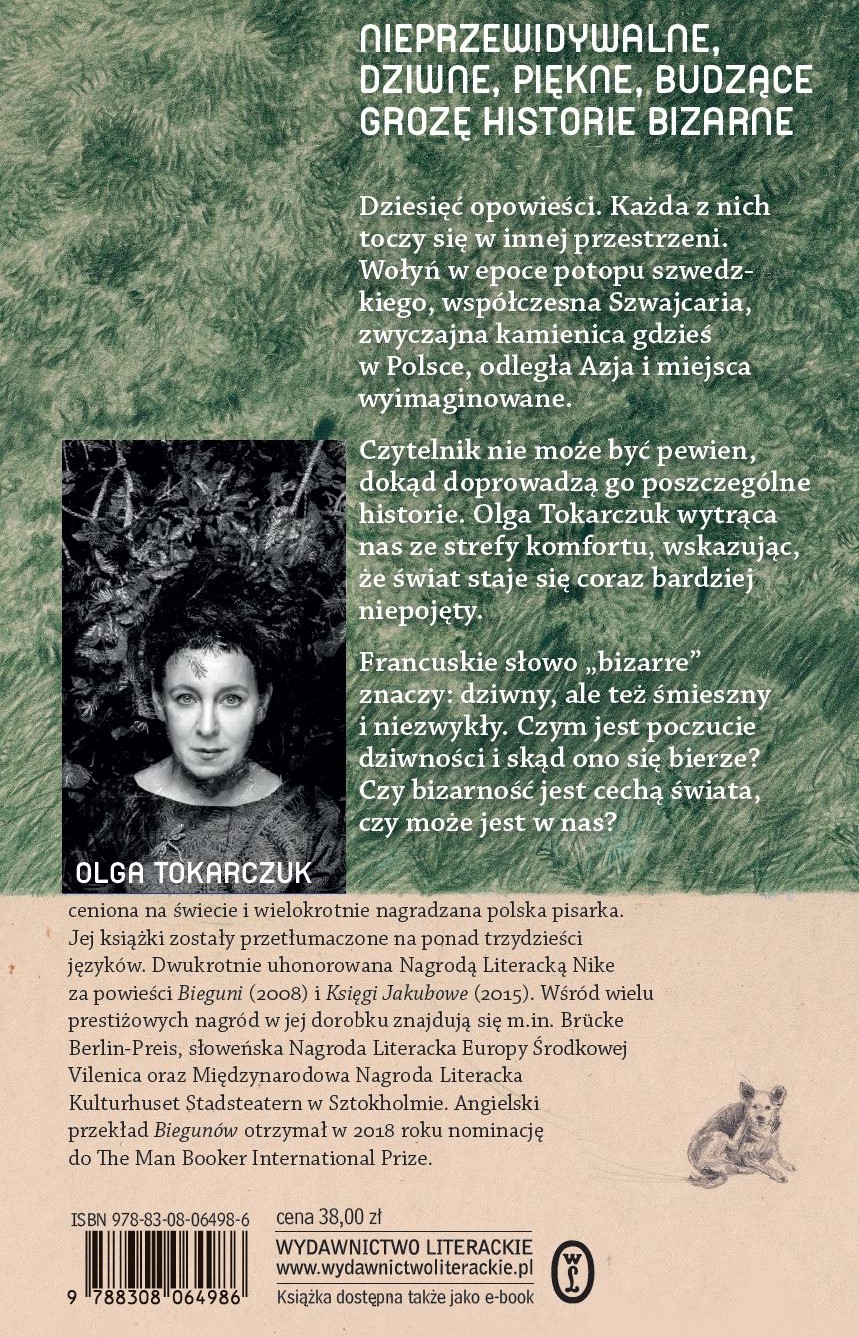 Pochodzące z języka francuskiego słowo „bizarre” znaczy: dziwny, zmienny, ale też śmieszny i niezwykły. Taka właśnie – zadziwiająca i wymykająca się wszelkim kategoriom – jest najnowsza książka Olgi Tokarczuk.