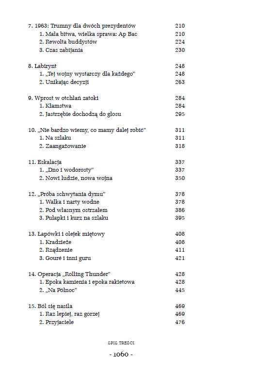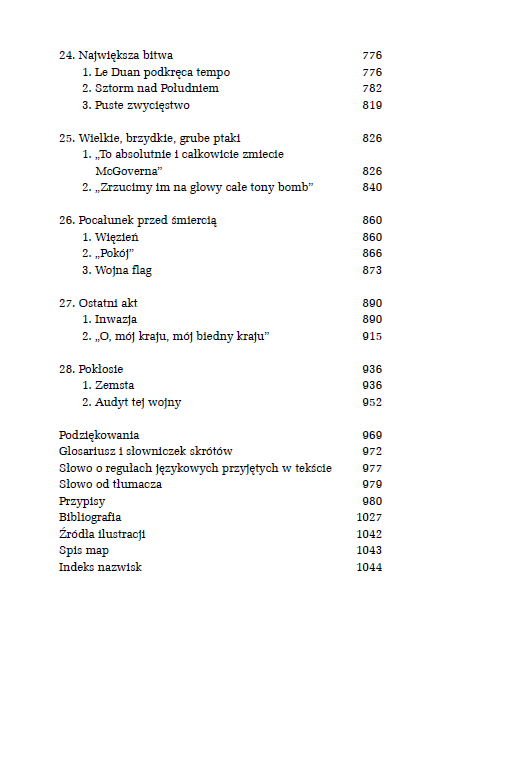 Dotychczasowe ujęcia wojny w Wietnamie koncentrowały się głównie na amerykańskiej stronie konfliktu. Max Hastings, najpoczytniejszy i wielokrotnie nagradzany brytyjski historyk, rysuje szerszą perspektywę niż sam konflikt zbrojny 1955-1975, zaczynając opowieść wraz z końcem drugiej wojny światowej. Przypomina też, że konflikt zbrojny w Wietnamie była przede wszystkim wojną Wietnamczyków, którzy ponieśli w niej najwięcej strat i ofiar. Jego opowieść jest historią ludzi – żołnierzy, oficerów wywiadu, polityków, dziennikarzy, cywilów. Ich heroicznych wysiłków i katastrofalnych błędów. Autor bez znieczulenia demaskuje główny problem amerykańskich G.I. – alienację i brak wsparcia ze strony rodaków za oceanem, oskarżających żołnierzy o mordowanie cywilów. Ukazuje też, w jak wielkim stopniu do amerykańskiej porażki w Wietnamie przyczyniło się traktowanie Wietnamczyków jak „podludzi”.