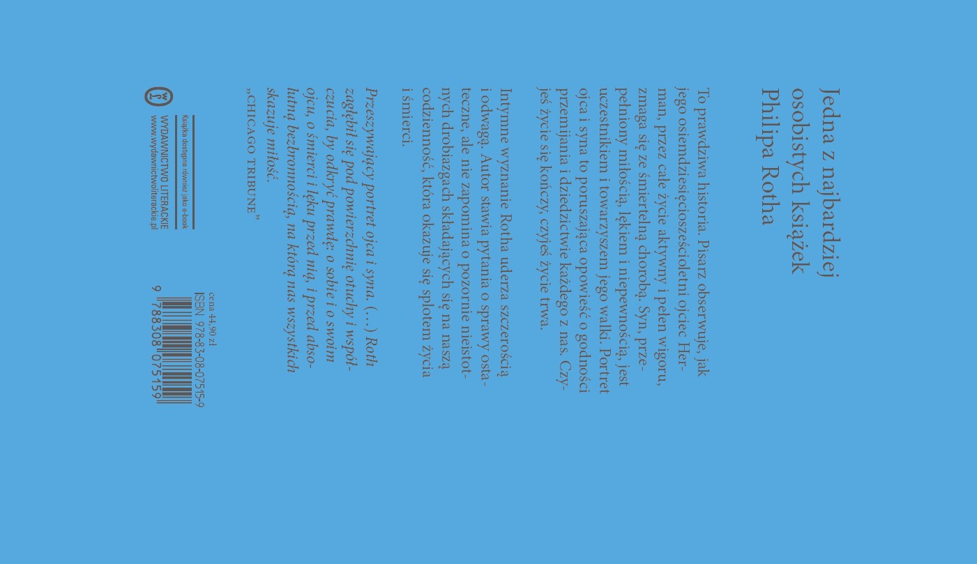 Intymne wyznanie Rotha uderza szczerością i odwagą. Autor stawia pytania o sprawy ostateczne, ale nie zapomina o pozornie nieistotnych drobiazgach składających się na naszą codzienność, która okazuje się splotem życia i śmierci.
