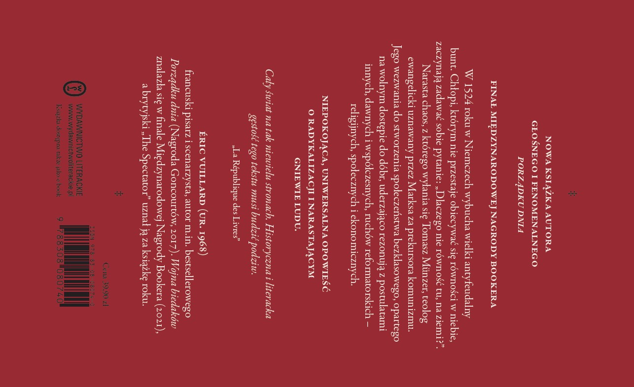 To właśnie Münzer jest centralną postacią nowej książki Érica Vuillarda, a jego wezwania do stworzenia społeczeństwa bezklasowego, opartego na wolnym i równym dostępie do dóbr uderzająco rezonują na kartach Wojny biedaków z postulatami innych, dawnych i współczesnych, ruchów reformatorskich – religijnych, społecznych i ekonomicznych.