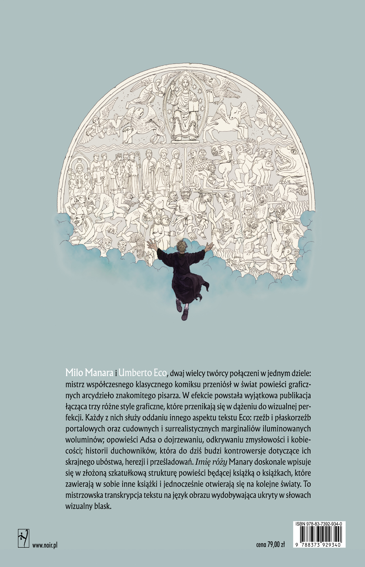 Przedstawiamy pierwszy z dwóch tomów unikalnego wydania arcydzieła Umberta Eco przeniesionego w świat powieści graficznych przez Milo Manarę, mistrza współczesnego klasycznego komiksu. W efekcie powstała wyjątkowa publikacja łącząca trzy różne style graficzne, które przenikają się w dążeniu do wizualnej perfekcji. Każdy z nich służy oddaniu innego aspektu tekstu Eco: rzeźb i płaskorzeźb portalowych oraz cudownych i surrealistycznych marginaliów iluminowanych woluminów; opowieści Adso o dojrzewaniu, odkrywaniu zmysłowości i kobiecości; historii duchowników, która do dziś budzi kontrowersje dotyczące ich skrajnego ubóstwa, herezji i prześladowań. "Imię róży" Manary doskonale wpisuje się w złożoną szkatułkową strukturę powieści będącej książką o książkach, które zawierają w sobie inne książki i jednocześnie otwierają się na kolejne światy. To mistrzowska transkrypcja tekstu na język obrazu wydobywająca ukryty w słowach wizualny blask.