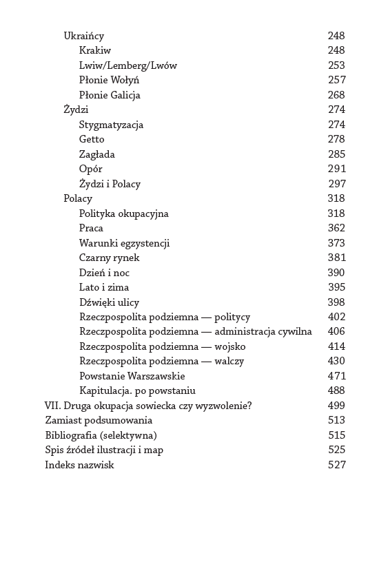 Ponadto w książce znajdziemy charakterystyki wszystkich czterech (!) okupantów oraz wnikliwy opis skomplikowanych i wieloaspektowych relacji polsko-ukraińskich. Autor stara się też oddać pełny obraz zróżnicowanego stosunku Polaków do Zagłady, wreszcie skupia się na niedającej się z niczym porównać batalii, jaką było bez wątpienia powstanie warszawskie.