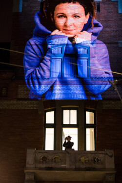 Zaczęliśmy w plenerze, czyli przed Domem pod Globusem (ul. Długa 1), w którym ma siedzibę Wydawnictwo Literackie. O godzinie 19:00 z wieży od strony ul. Sławkowskiej został odegrany Hejnał mariacki na cześć Olgi Tokarczuk, a następnie ściana budynku rozbłysła wybranymi cytatami z jej twórczości. Przechodnie mogli podziwiać wizualizację do północy, kiedy to jej wygaszenie symbolicznie zakończyło historyczny dzień, w którym Tokarczuk odebrała Nagrodę Nobla.