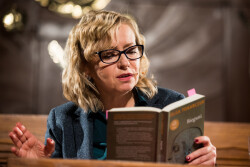 W tym samym czasie, wewnątrz, a ściślej: w Sali Mehofferowskiej Wydawnictwa Literackiego, cztery wybitne osobowości sceny i filmu czytały fragmenty powieści noblistki.