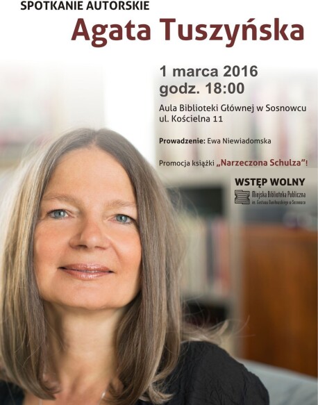 Zapraszamy na wieczór autorski Agaty Tuszyńskiej. Autorka będzie promować swoją najnowszą książkę „Narzeczona Schulza”.