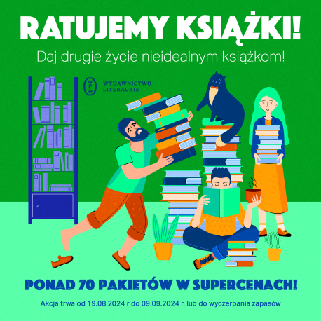 Kochamy książki i tym lekko uszkodzonym chcemy dać drugie życie! Z radością ogłaszamy więc akcję ratowania książek poturbowanych przez los (z zarysowaną okładką, zgniecionym rogiem, zabrudzeniami lub pomiętymi kartkami), która startuje 19 sierpnia o godzinie 14.00. Przygotowaliśmy dla Was ponad 70 pakietów książek w rewelacyjnych cenach.