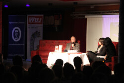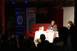 Przez dwie godziny Jerzy Stuhr opowiadał o swym aktorskim powołaniu, o punktach zwrotnych swej kariery, a także o swych książkach i różnicach między graniem a pisaniem.