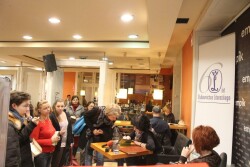 Krakowscy czytelnicy na zakończenie spotkania dostali najlepszą z możliwych recept na szczęście: „Jeśli chcesz być szczęśliwy, to bądź!”
