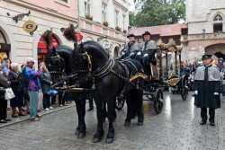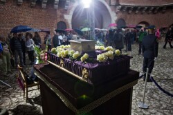 W deszczowy wtorek krakowianie i goście z całego świata towarzyszyli wybitnemu pisarzowi w ostatniej drodze. Od 10.00 rano urna z prochami Sławomira Mrożka była wystawiona w Barbakanie. Tam też można było wpisywać się do księgi kondolencyjnej. Przed 13.00 kondukt pogrzebowy przeszedł spod Barbakanu, przez ul. Floriańską, Rynek Główny i Grodzką do kościoła św. św. Piotra i Pawła, gdzie metropolita krakowski kard. Stanisław Dziwisz odprawił nabożeństwo żałobne.
